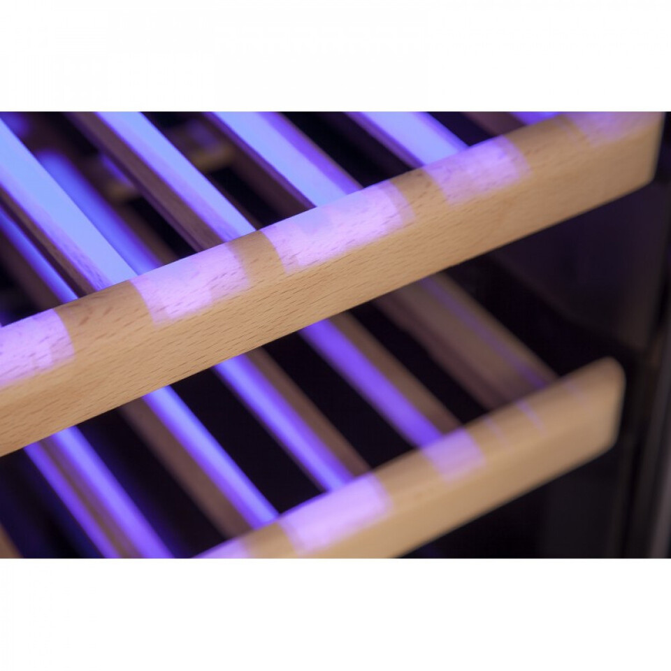 В каждом отделении можно установить температуру от +3 до +22 ˚С и хранить как красное, так и белое вино.Компрессорный винный шкаф Cold Vine C30-KST2 предназначен для установки под столешницу. Он также может быть установлен в нишу, или быть отдельностоящим. При встройке винного холодильника в мебель нужно обеспечить доступ воздуха к вентиляционной решётке, которая расположена снизу в передней части шкафа.