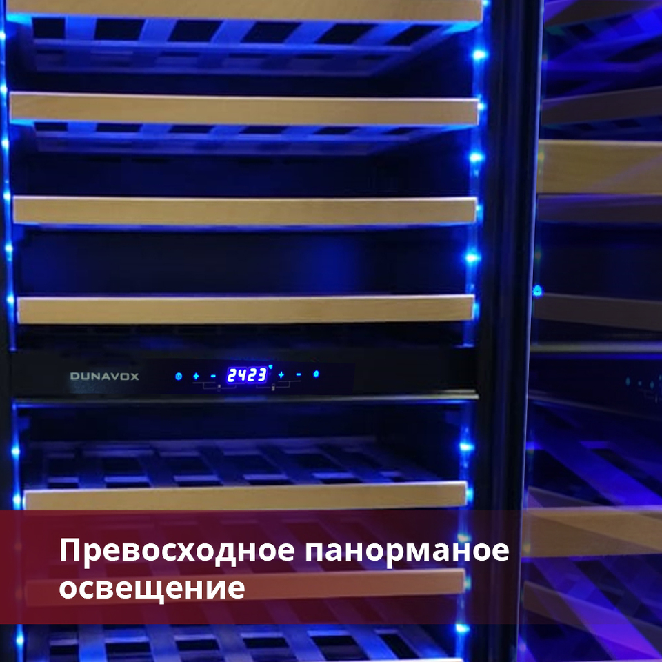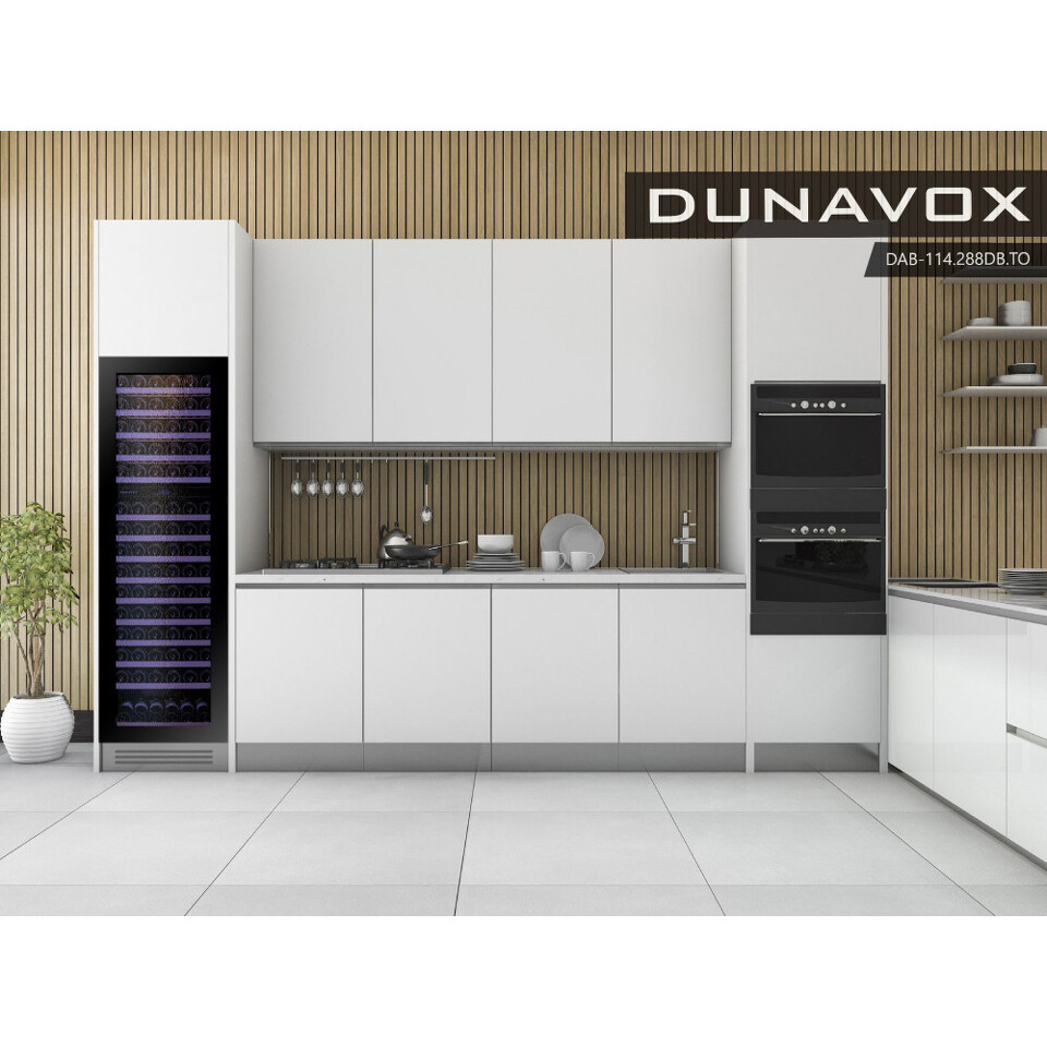 Компрессорный винный шкаф Dunavox DAB-114.288DB.TO обладает большой вместимостью, что крайне редко встречается у встраиваемых моделей.