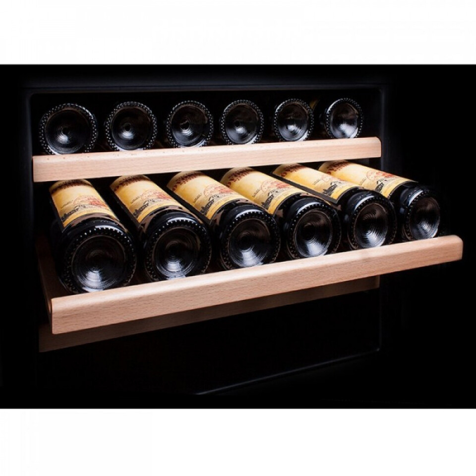 Винный холодильник Dunavox DAU-52.146SS с вместительной холодильной камерой будет отличным выбором для кухни или небольшого ресторана.Однозонная модель DAU-52.146W оснащена внутренним вентилятором для равномерного доступа холодного воздуха ко всем полкам шкафа, угольным фильтром и нагревательным элементом. Комплектуется холодильник DAU-52.146W шестью деревянными полками. В нем предусмотрена возможность перевешивания двери на другую сторону, что дает дополнительное удобство при установке холодильника в подходящее по габаритам место.Шкаф оснащен электронной панелью управления, с помощью которой пользователь выбирает необходимый температурный режим работы аппарата. В модель DAU-52.146W встроены такие функции как: функция звукового оповещения об открытой двери, энергосберегающая функция "Отдых", позволяющая при работающем холодильнике (работающем охлаждении вина) на время отключить дисплей, подсветку и звуковые оповещения и функция увеличения влажности воздуха для создания оптимальных условий для хранения и дозревания вина.Элегантный внешний вид винного холодильника DAU-52.146W подойдет как к интерьеру современной кухни, так и обстановке небольшого ресторана. Корпус из металла с покрытием черного цвета, дверца выполнена из тонированного стекла в бесшовной стальной раме белого цвета. Ручка шкафа удобная, накладная, выполнена из нержавеющей стали. Цифровой индикатор температуры и внутреннее освещение - на светодиодах синего цвета.Винный шкаф Dunavox DAU-52.146W легко встраивается под столешницу или может устанавливаться отдельно. Охлаждение компрессора происходит через вентиляционные решетки внизу шкафа, что позволяет встраивать винный холодильник без зазоров.Рекомендуется устанавливать винный шкаф Dunavox DAU-52.146W вдали от прямых солнечных лучей и источников тепла (духовки, нагревателя, батареи и т.д.). Прямой солнечный свет может плохо повлиять на корпус, а источники тепла могут увеличить энергопотребление. Не допускается установка аппарата рядом с плитой или прибором, который может нагревать воздух в пространстве 1-5 см от его корпуса (например, рядом схолодильником, у которого теплообменная стенка граничит с аппаратом). Не рекомендуется устанавливать прибор на полы с подогревом без специальной термоизолирующей подложки.Отличительные особенностиОдна зона охлаждения.Автоматическая система разморозки.Минимальный уровень энергопотребления.Шесть деревянных полок без лакового покрытия.Увеличенная до 3 лет гарантия.Функциональные особенностиДверца шкафа выполнена из тонированного стеклопакета с защитой от УФ лучей в рамке из полированной нержавеющей стали.Регулируемый температурный режим в диапазоне от +5°C до +18°C подходит для хранения большинства сортов вин.Равномерное поддержание температуры в по всему объему шкафа осуществляется внутренним вентилятором.Функция звукового оповещения об открытой двери.Функция "Отдых".Функция увеличения влажности воздуха.Дверь перевешивается.Угольный фильтр служит для улучшения воздухообмена в шкафу, очищения от посторонних запахов и устранения лишней влаги.Удобная панель управления обеспечивает простую и быструю установку необходимой температуры.Светодиодная подсветка. **Предельные значения температуры в помещенииИзделие предназначено для работы в температурных условиях, указанных в табли