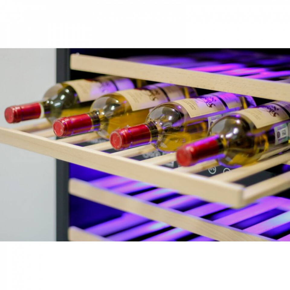 Регулируемый температурный режим каждой зоны шкафа в диапазоне от +5°C до +22°C позволяет хранить белые, красные и игристые вина.