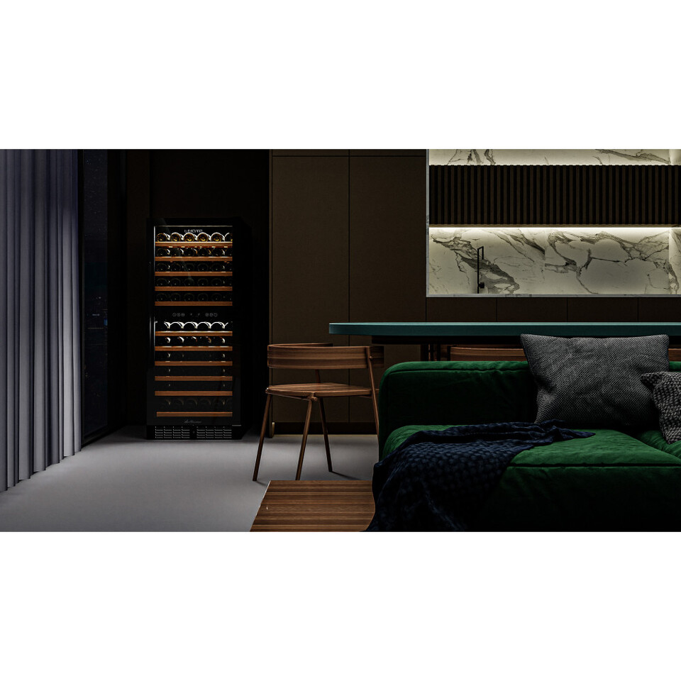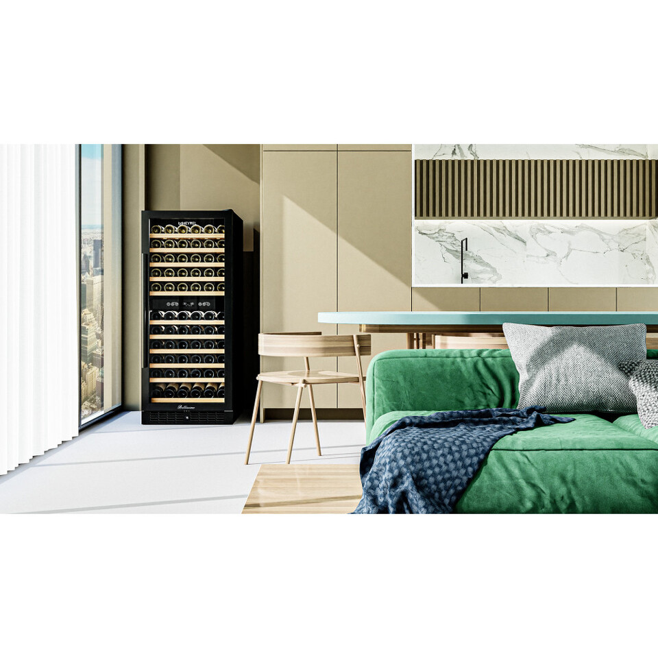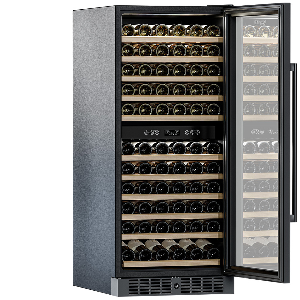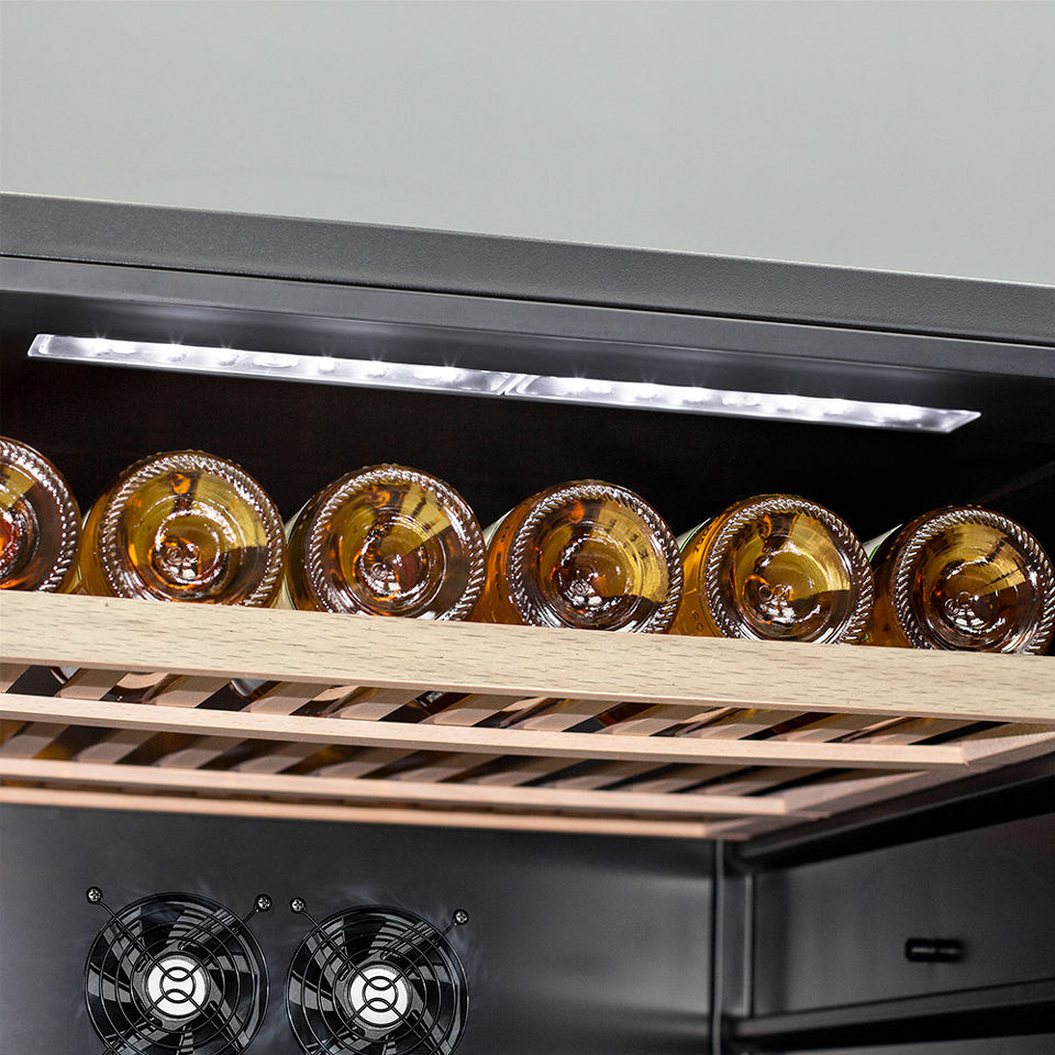 Компрессорный винный шкаф Meyvel MV116-KBT2 обладает большой вместимостью и способен разместить до 116 бутылок. Располагаются они на полках из массива бука. Внутреннее пространство шкафа разделено на 2 температурные зоны с возможностью настраивать каждую из них: диапазон нижней зоны от +5°C до +10°C, а верхней - от + 10°C до +18 °C. Холодильник поддерживает влажность в диапазоне 60-80%, как в настоящем винном погребе.