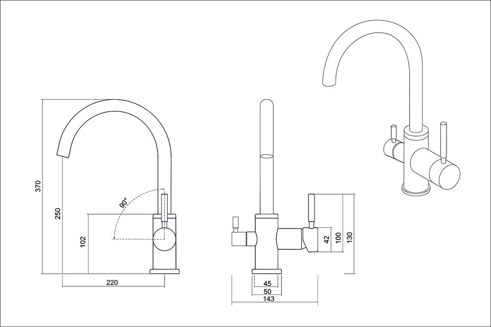 Кухонный смеситель с возможностью подключения фильтра для очистки воды. Фильтрованная вода подается отдельной ручкой через отдельную трубку и не смешивается с водопроводной водой. Однорычажное управление поможет легко регулировать температуру и напор подачи воды. Соответствует стандартам DIN DVGW.
