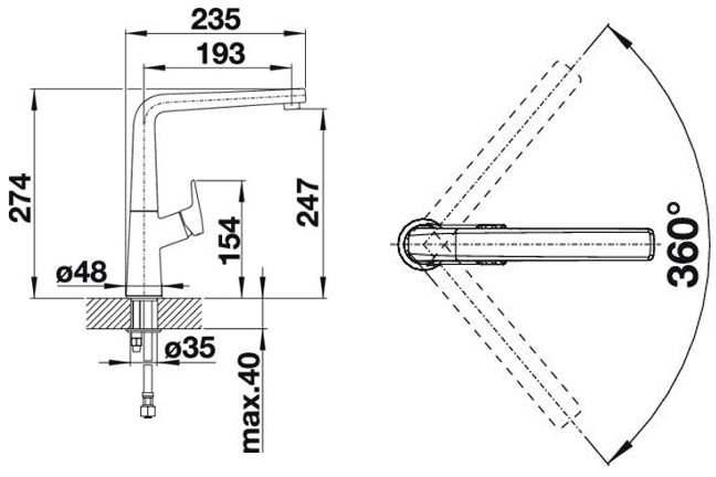 Высота излива, см 24.7