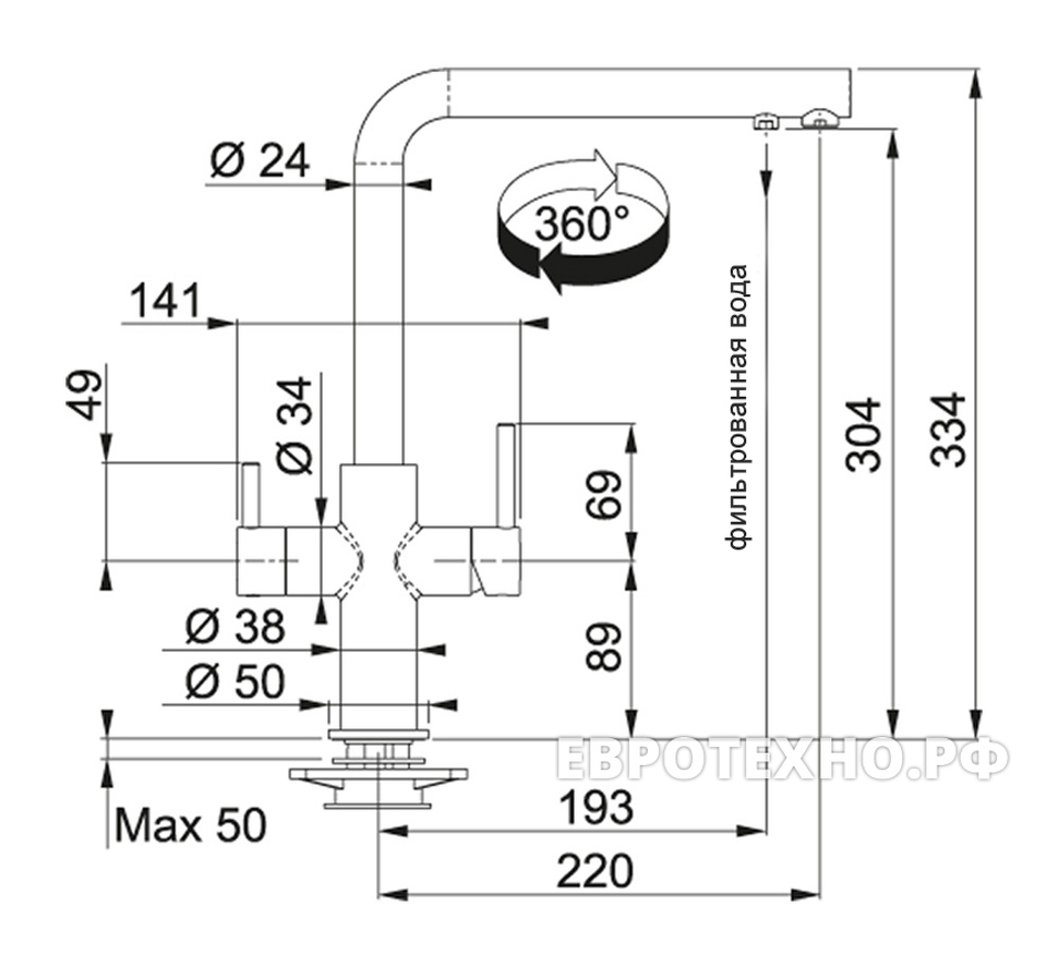 Высота излива, см 29.4