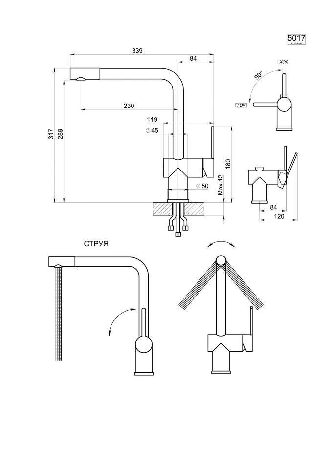 Фото Смеситель для кухни GRANULA 5017, НЕРЖ