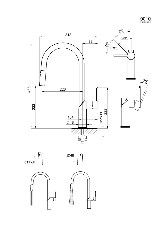 Фото Смеситель для кухни GRANULA 9010, НЕРЖ
