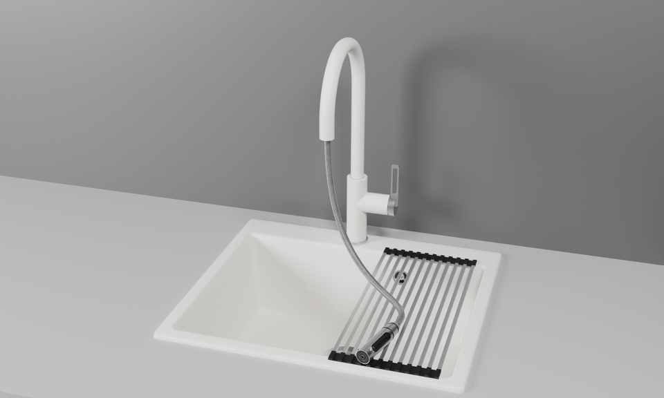 Смеситель для кухни с выдвижным изливом и подключением к фильтру от российского бренда Granula.