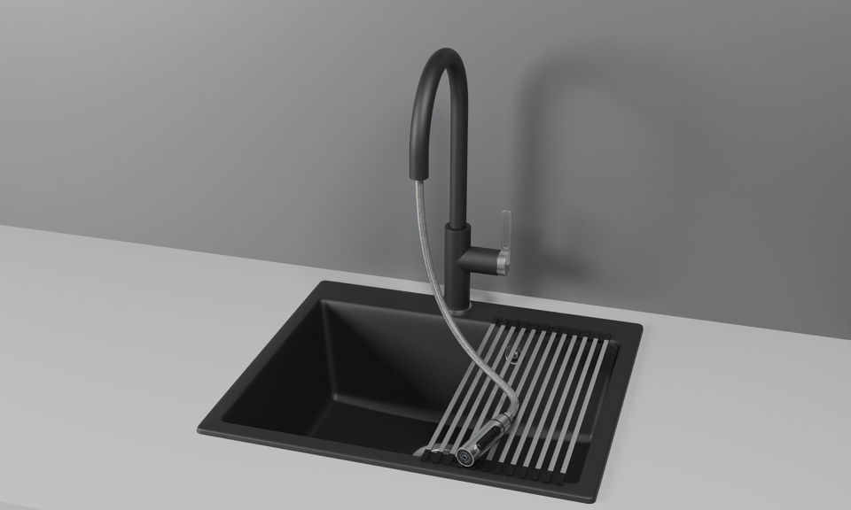 Смеситель для кухни с выдвижным изливом и подключением к фильтру от российского бренда Granula.