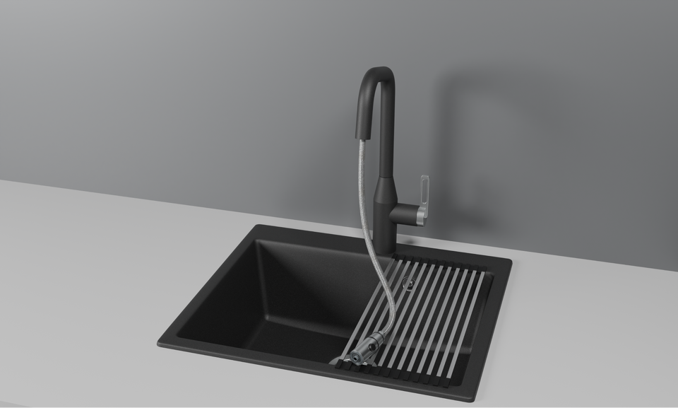 Смеситель для кухни с выдвижным изливом и подключением к фильтру от российского бренда Granula.
