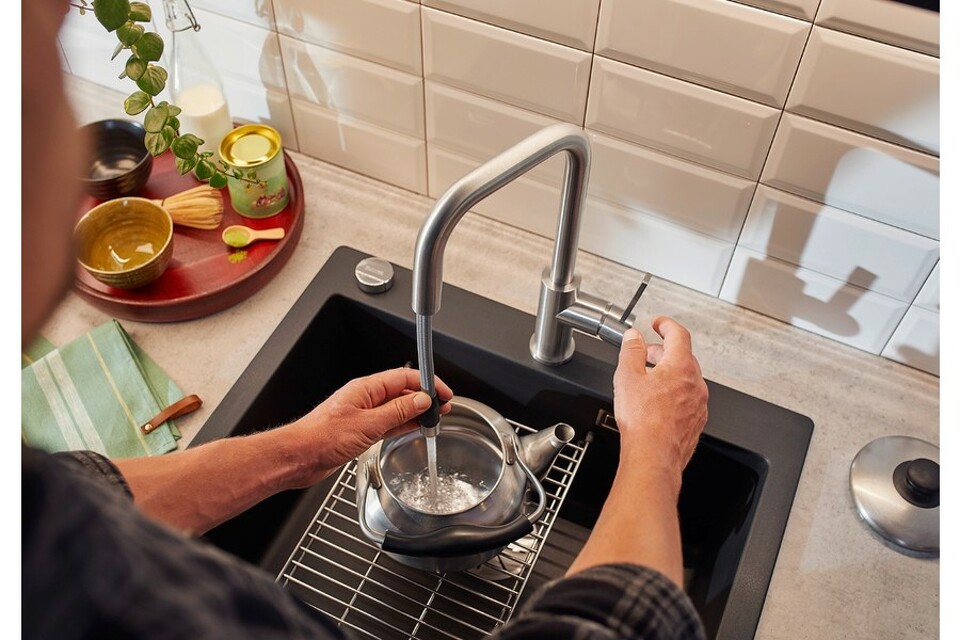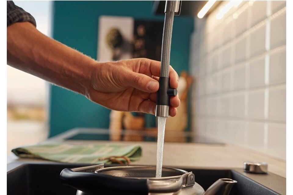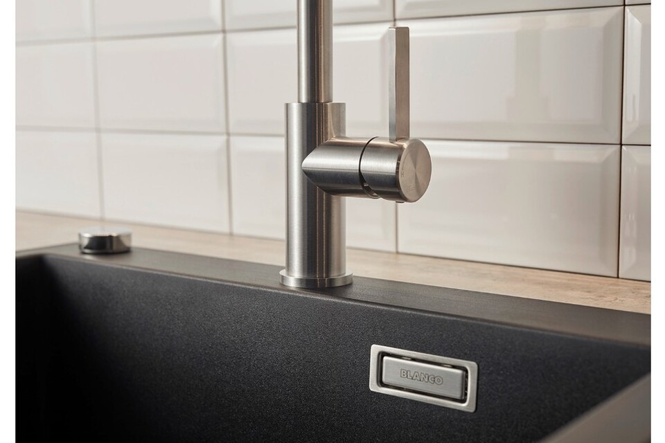 Смеситель Бланко Jandora-S удобен для наполнения кастрюль и ваз благодаря высокому изливу с выдвижной лейкой. Рычаг управления с вертикальным нулевым положением позволяет устанавливать модель близко к стене. Базовая установка настроена на холодный пуск, что помогает экономить горячую воду.