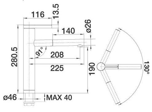 Высота излива, см 19