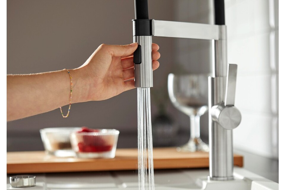 Смеситель Бланко Sonea-S Flexo оснащен гибким резиновым шлангом черного цвета, который обеспечивает удобную подачу воды, его удобно фиксировать точным магнитным держателем. Двухструйный душ легко переключать с ламинарной струи на душевую.