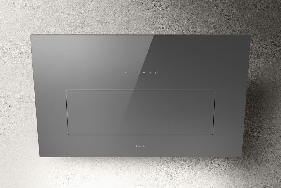 Вытяжка Elica BLOOM GR/A/85 относится к дизайнерскому ряду Design Fabrizio Crisà. Это значит, что модель сочетает в себе интересные стилевые элементы и функциональность, которые делают прибор украшением кухни и позволяют поддерживать в помещении качественный микроклимат. Данная техника шириной 85 см относится к наклонному типу, при этом монтаж осуществляется на стену. фасад выполнен из серого матового стекла. Оно легко моется, что помогает экономить силы во время уборки. Створка Moving Visor открывается, чтобы увеличить мощность всасывания. Таким образом очистка пространства от запахов и гари становится эффективнее.