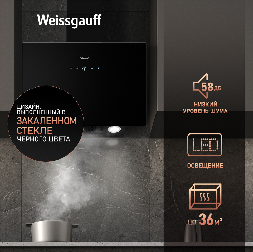 Эффективная работа в помещении площадью до 36 м2 - это гарантия того, что после установки вытяжки Weissgauff, обновление воздуха будет соответствовать всем требуемым нормам, сохраняя ваше здоровье на долгие годы!
