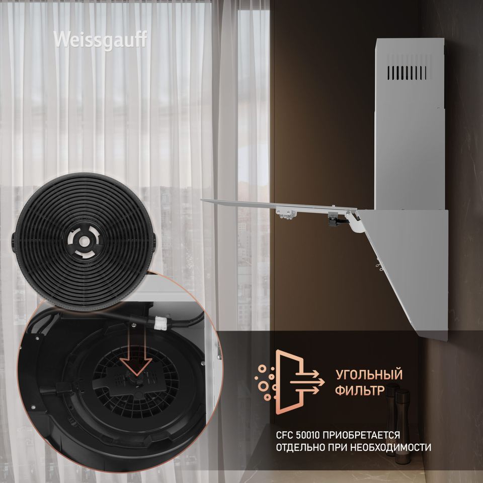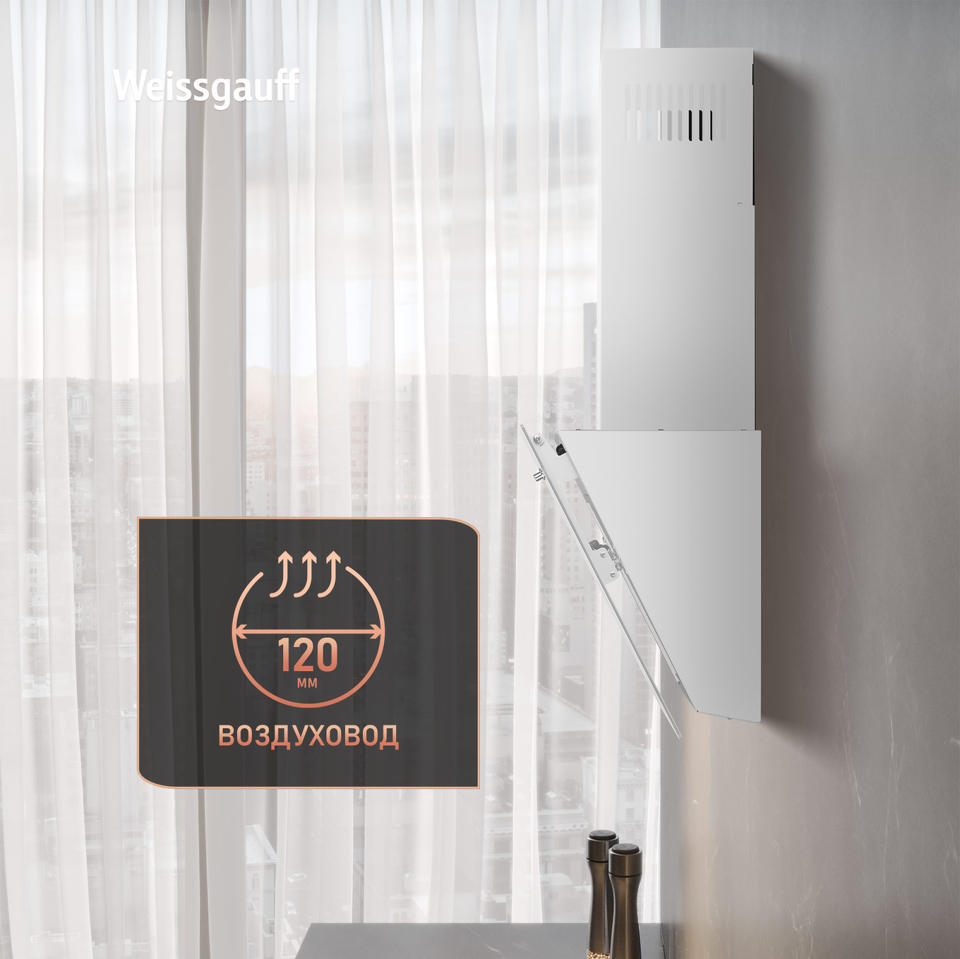 Изящная, элегантная и при этом мощная наклонная вытяжка от Weissgauff, выполненная в белом цвете, способная работать как в режиме отвода, так и в режиме рециркуляции, станет универсальной и стильной помощницей в интерьере вашей кухни.