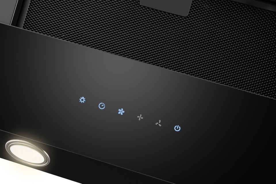 Чувствительное сенсорное управление позволит вам с легкостью включить или выключить вытяжку, выбрать необходимую скорость и управлять встроенным освещением