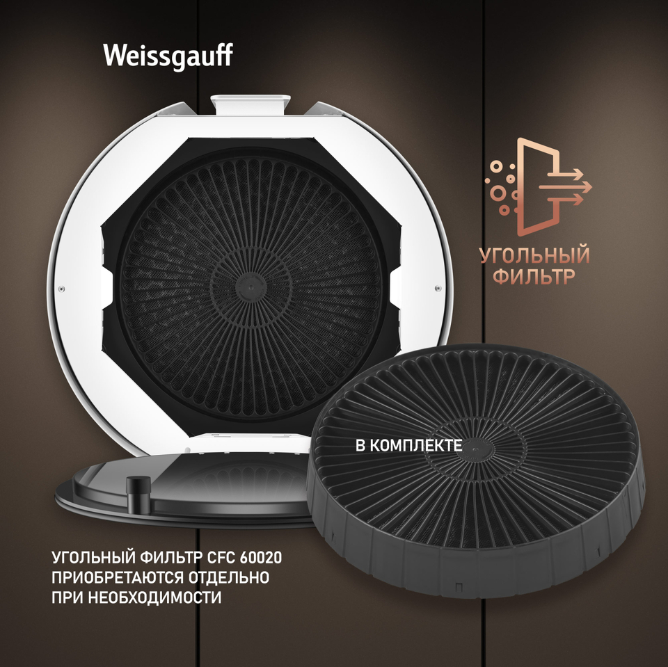 Работа в режимах отвода и циркуляции откроет вам широкие возможности по установке этой вытяжки в проект вашей кухни. Организуйте полноценный вывод воздуха из помещения или установите угольный фильтр и используйте вытяжку вместе с ним - какой бы вариант вы ни выбрали, модель от Weissgauff сделает это возможным!