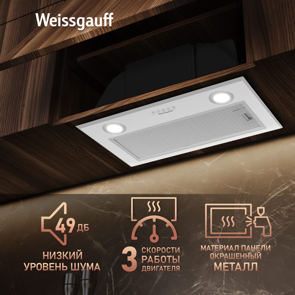 • Низкий уровень шума 49 дБ сделает работу с данной вытяжкой по-настоящему комфортной и приятной, ведь мы в Weissgauff знаем, как добиться высокой производительности без лишнего шума!