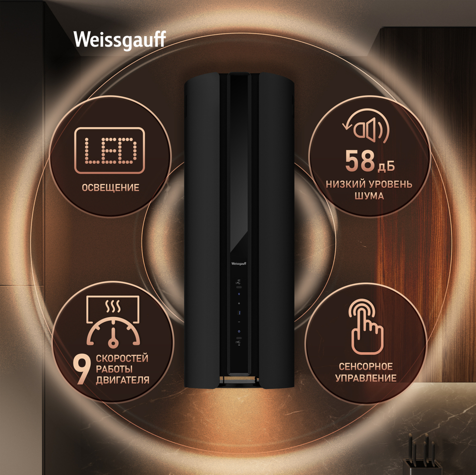 Низкий уровень шума 58 дБ сделает работу с данной вытяжкой по-настоящему комфортной и приятной, ведь мы в Weissgauff знаем, как добиться высокой производительности без лишнего шума!